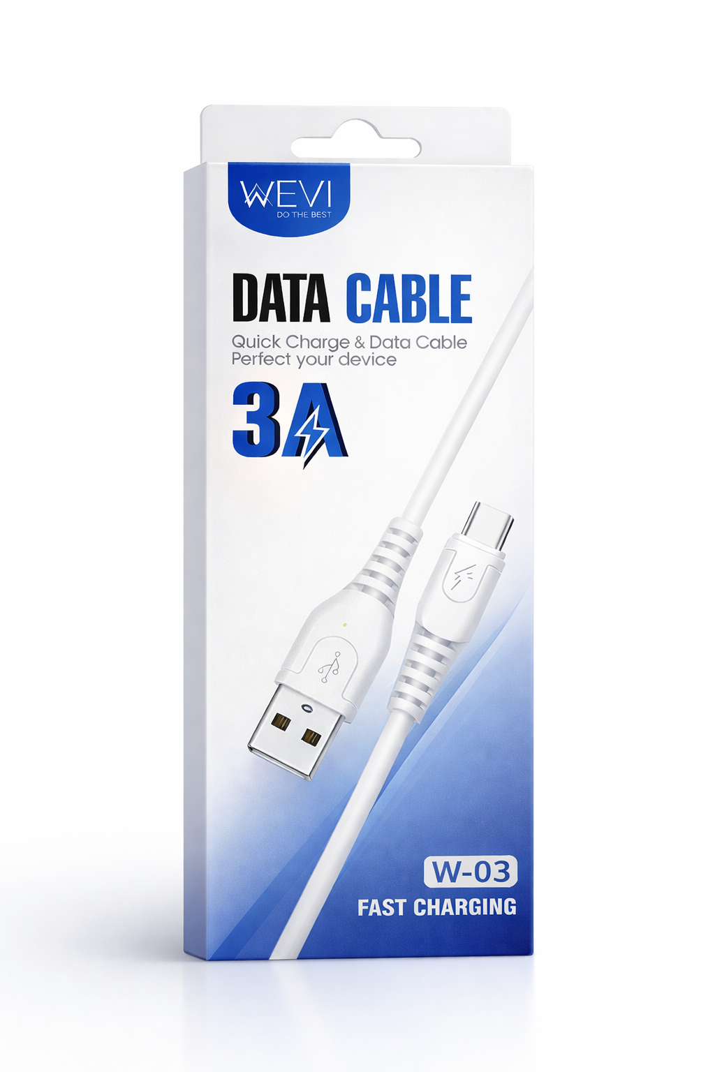 كابل البيانات WEVI Type-C هو كابل شحن ونقل بيانات سريع مصمم خصيصاً للأجهزة المزودة بمنفذ Type-C.