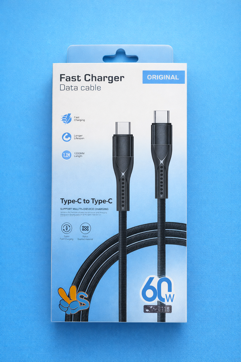 كابل شاحن من نوع تايب-سي إلى تايب-سي بقدرة 60 واط.
