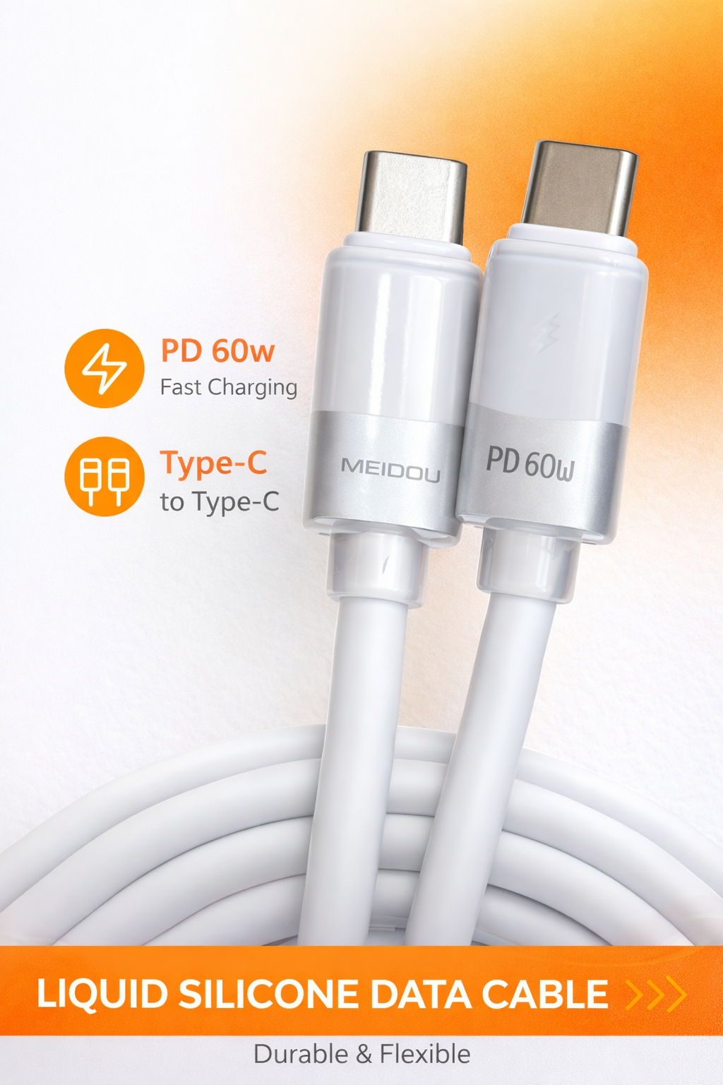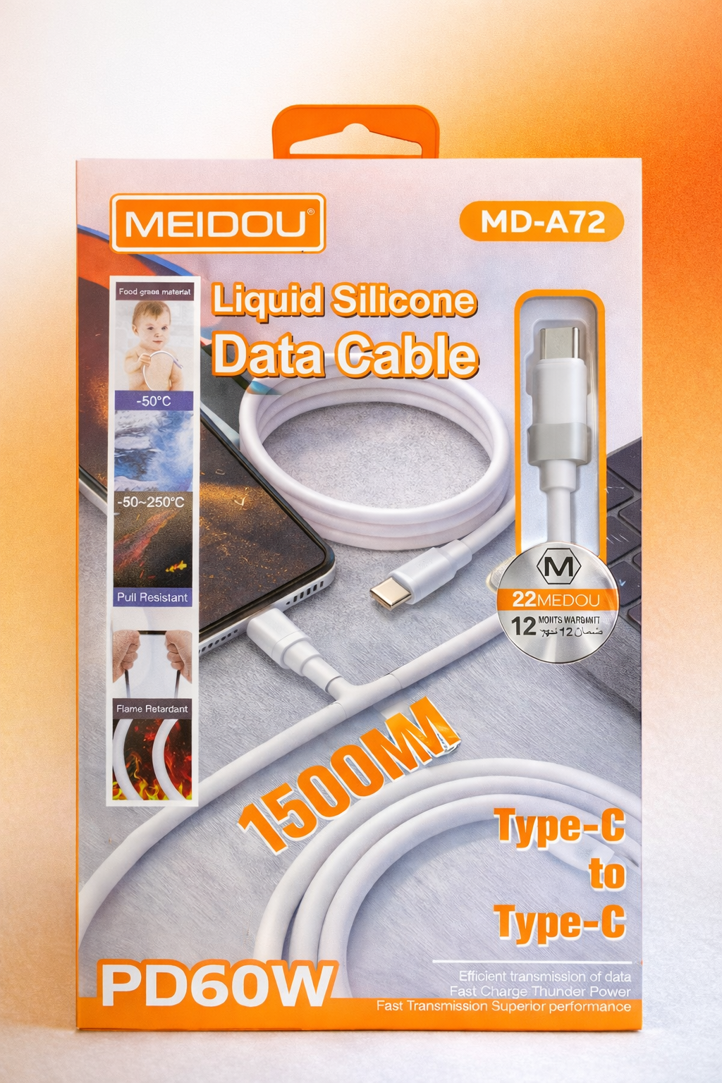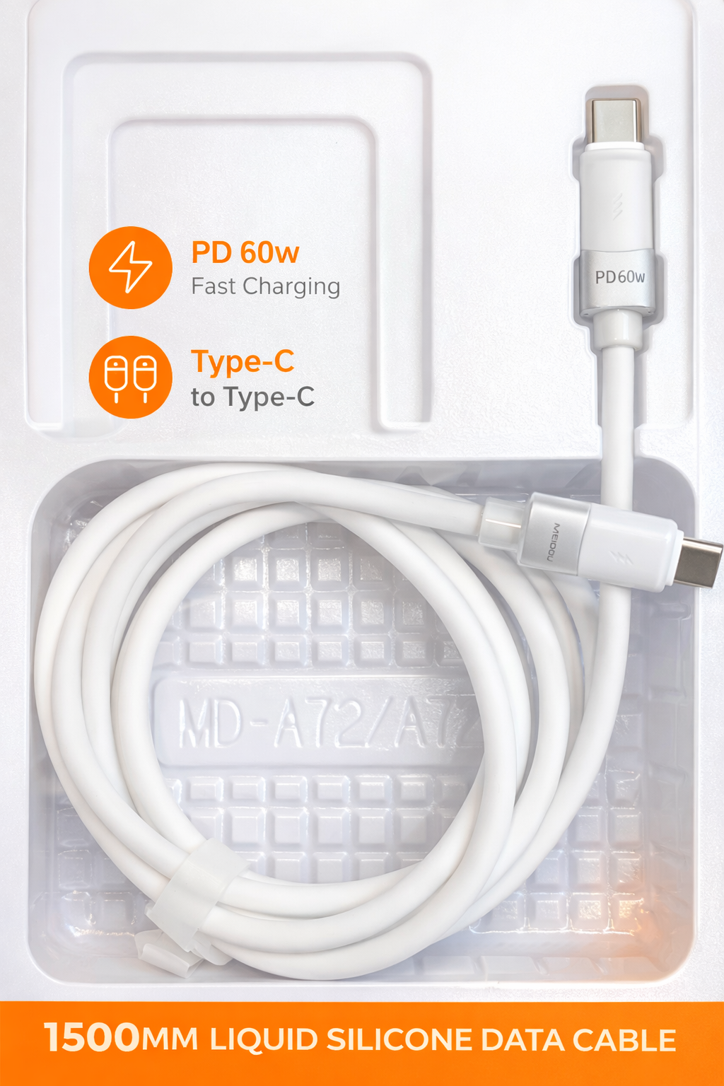اختبر قوة الشحن الفائق السرعة ونقل البيانات بكفاءة مع كابل Meidou MD-A72 ،مصنوع من السيليكون السائل المتين، يدعم تقنية PD60W و Type-C إلى Type-C.