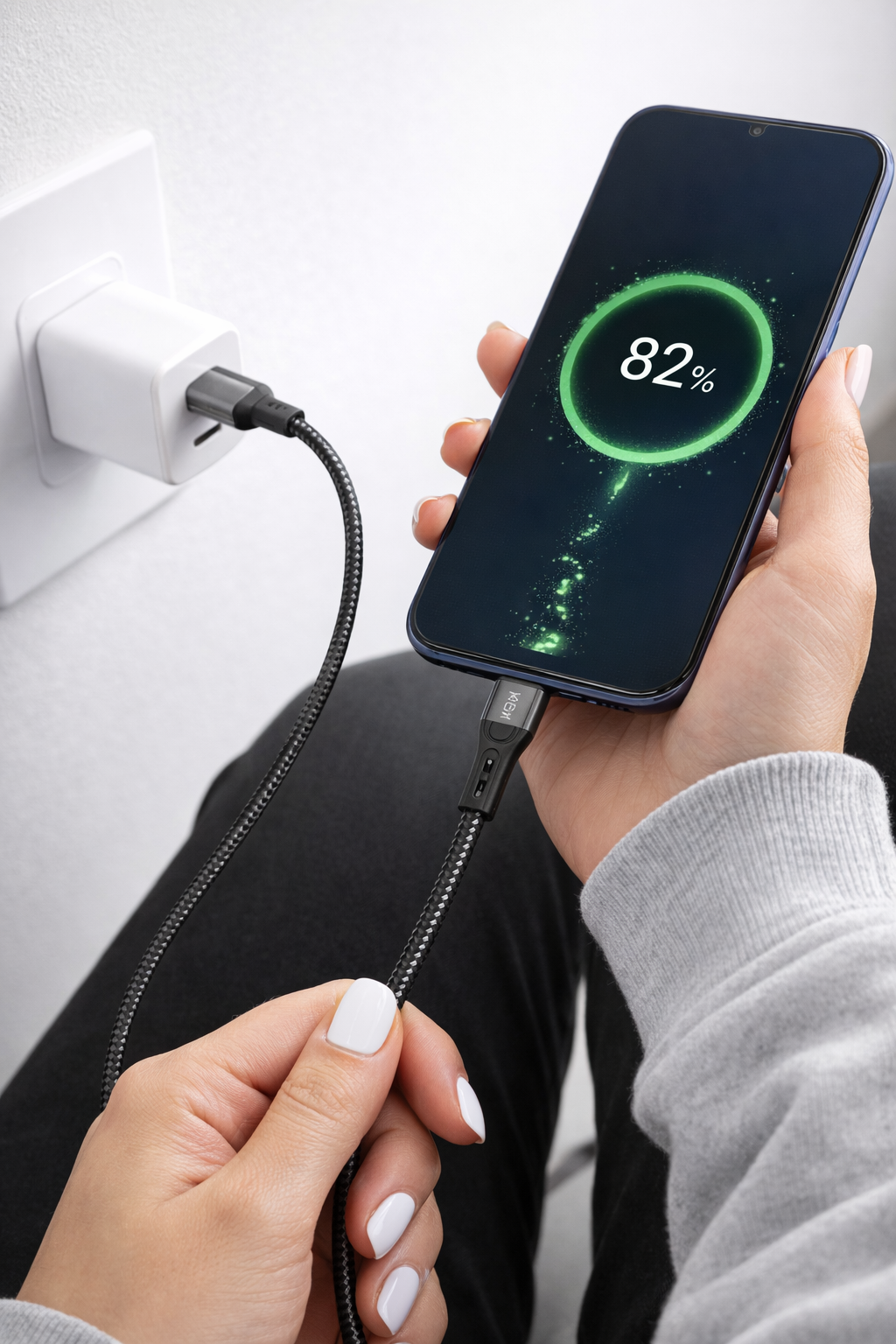 المتانة: يتميز الكابل بتصميم مضفر من النايلون، مما يمنحه بنية قوية ومقاومة للتشابك والتلف الناتج عن الاستخدام المتكرر.