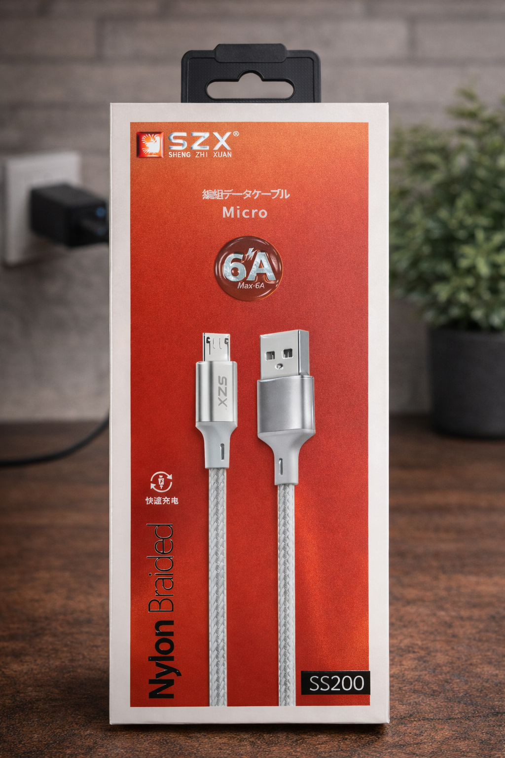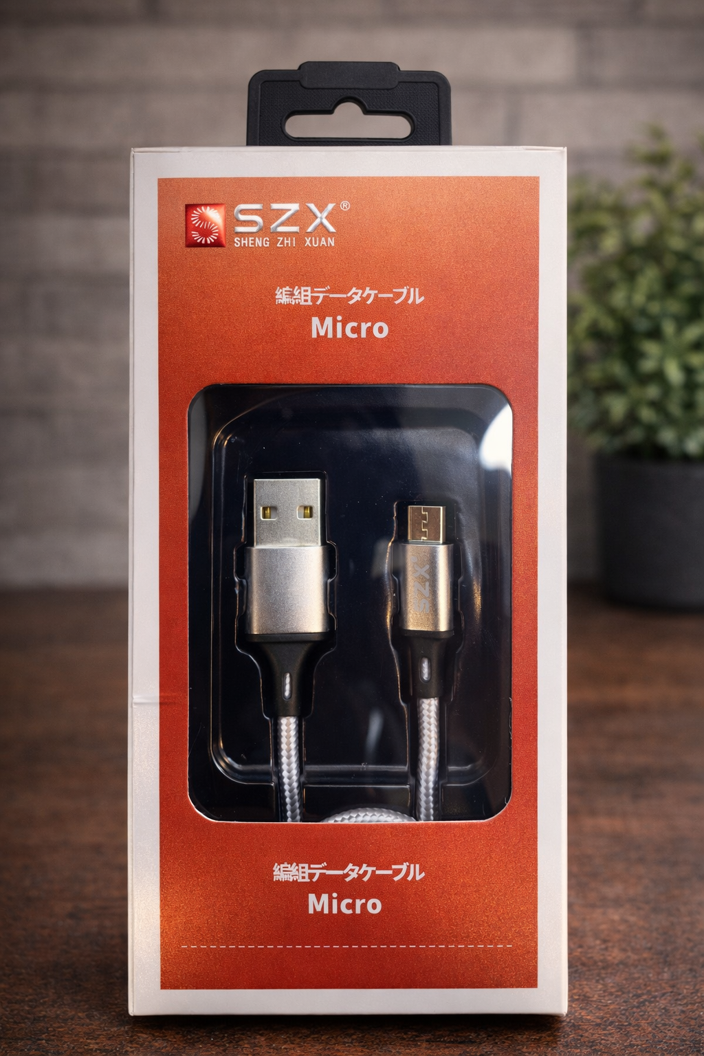 وصلة شاحن SZX Micro USB ، كابل متين مصمم للشحن السريع ونقل البيانات.