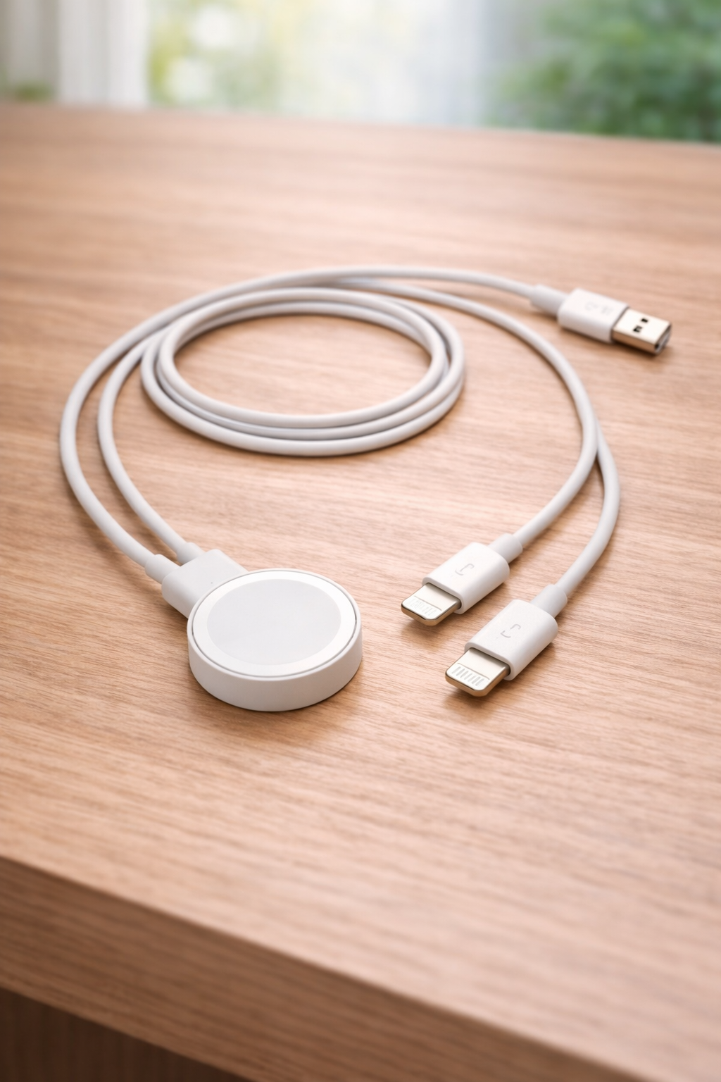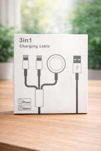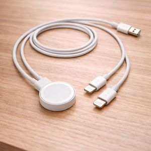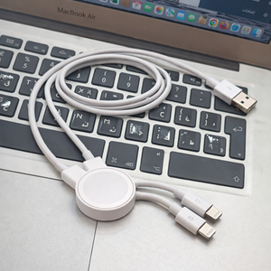 وصلة شحن عملية 3×1 بمدخل USB واحد، تتيح لك شحن جهازين آيفون وساعة Apple Watch بنفس الوقت.