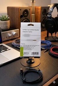 وصلة صوت عملية وعالية الجودة تتيح لك توصيل هاتفك بمنفذ Type-C إلى السماعات أو مدخل AUX في السيارة أو المكبرات بسهولة. مصممة لنقل الصوت بدقة ووضوح مع توافق واسع مع معظم الأجهزة الحديثة.