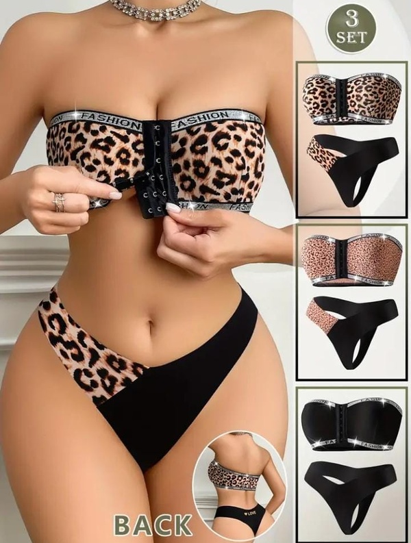 إطلالة أنثوية مثيرة وأنيقة – طقم لانجري من 3 قطع بتصميم عصري بطبعة الفهد، يمنحك راحة وأناقة في جميع الأوقات.