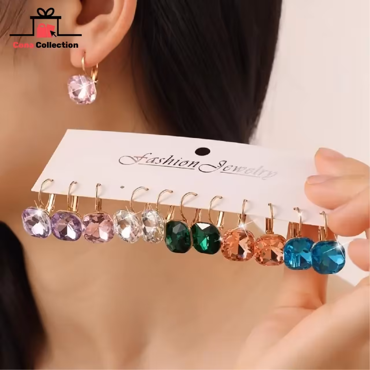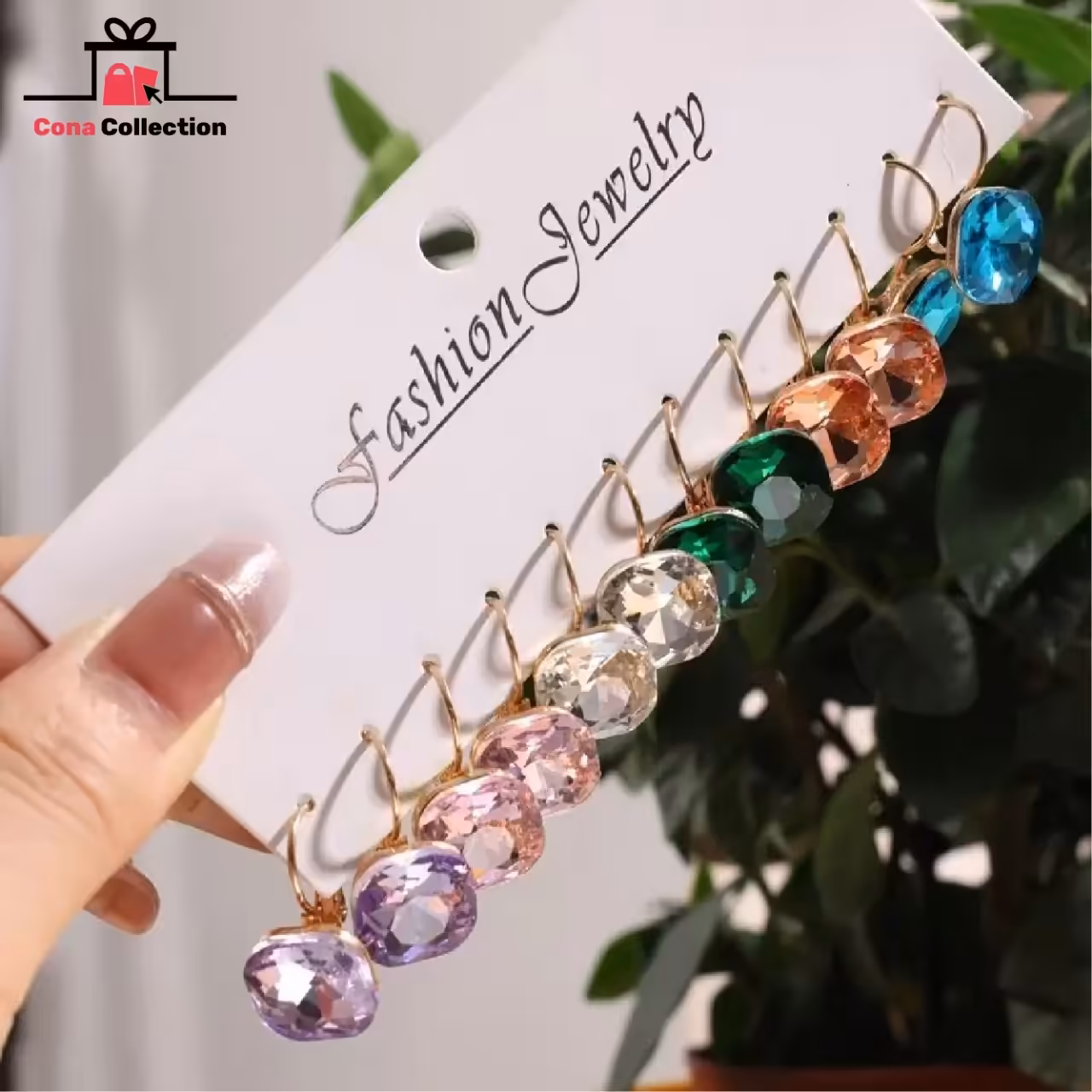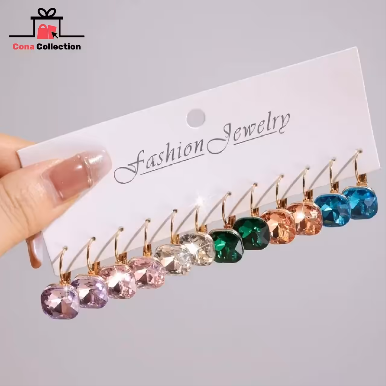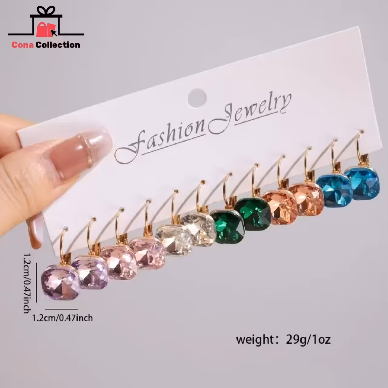 – تحتوي المجموعة على 6 أزواج من الأقراط الذهبية ذات الالوان المتعددة .