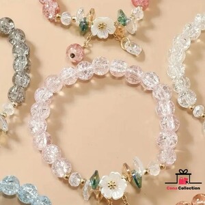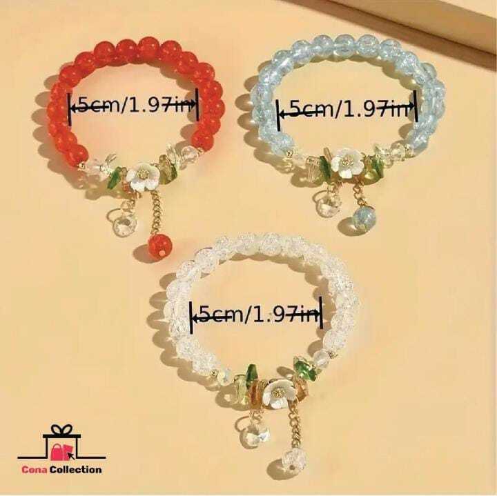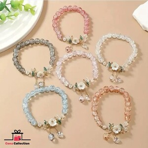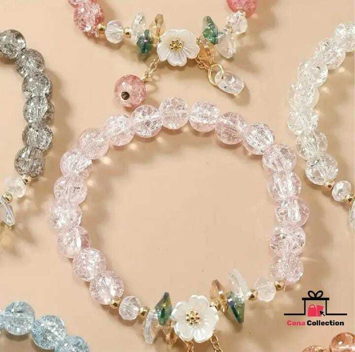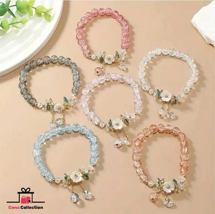 أزهار كريستال: تحتوي بعض الأساور على تفاصيل رائعة من أزهار كريستال، مما يضفي عليها طابعًا طبيعيًا وأنيقًا، ليعزز من جمال التصميم
