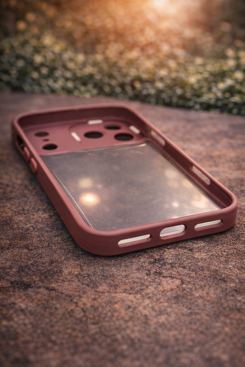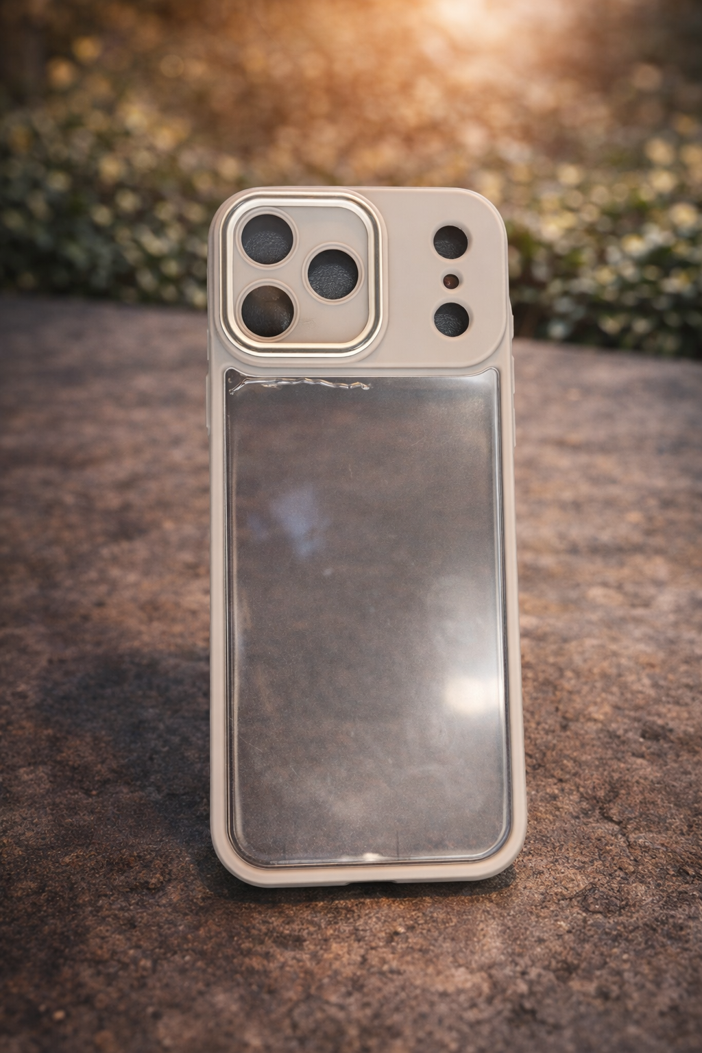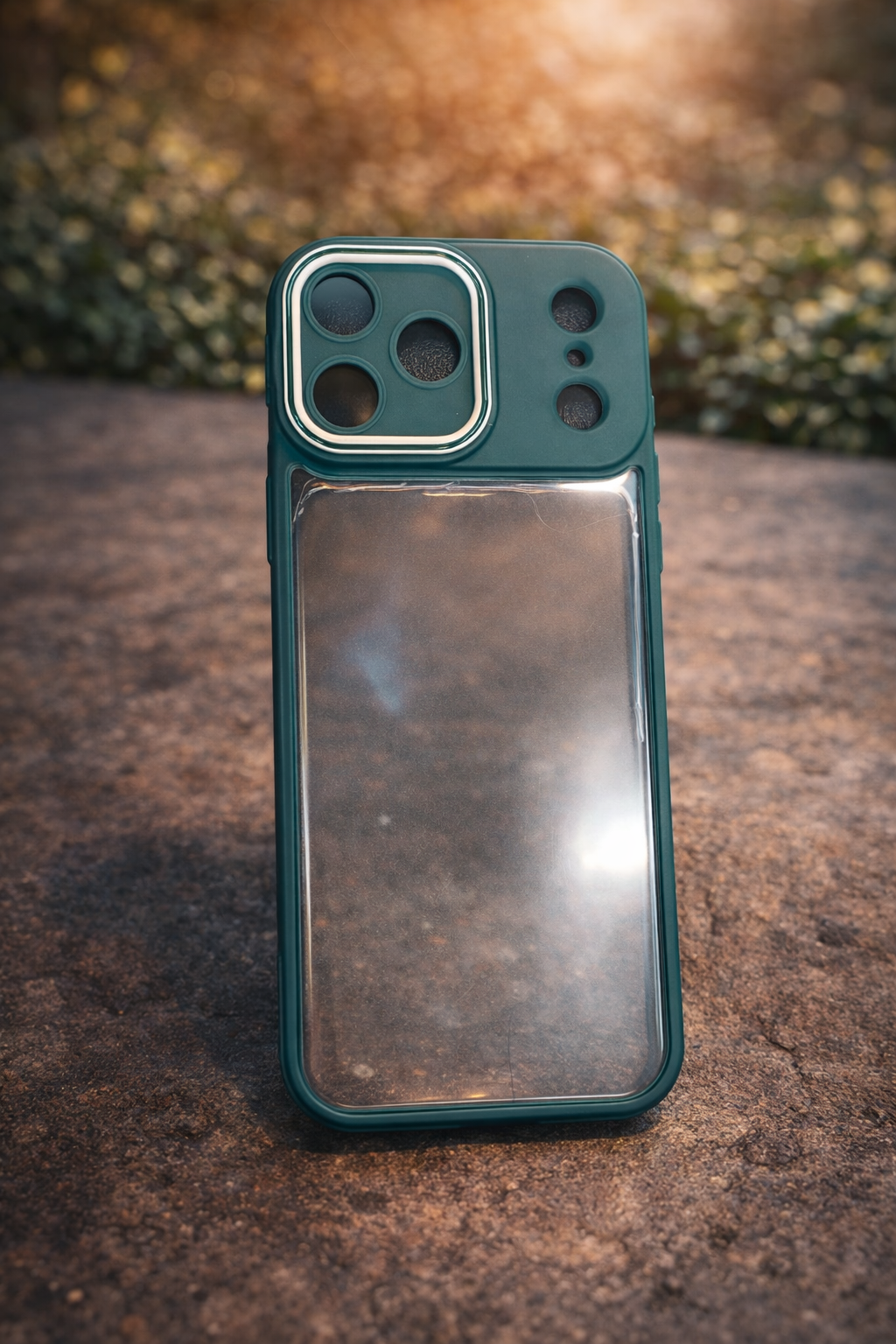 يأتي بظهر شفاف يُظهر جمال الهاتف مع إطار مطاطي ناعم للحماية من الصدمات والخدوش، بالإضافة إلى حواف مرتفعة لحماية الكاميرا وكبسات بارزة وسهلة الاستخدام (الصوت + الميوت).