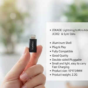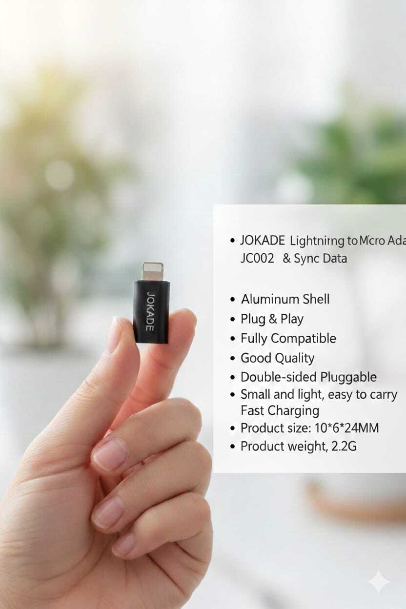 محول JC002 Lightning إلى Micro USB بتصميم صغير وعملي يتيح لك استخدام كابل الآيفون لشحن ونقل البيانات لأجهزة المايكرو بسهولة تامة. مصنوع بهيكل ألمنيوم متين لتحمل الاستخدام اليومي، ويدعم الشحن السريع ونقل البيانات بكفاءة عالية. يتميز بخاصية Plug & Play دون الحاجة لأي إعدادات، ومتوافق مع معظم الأجهزة مثل الهواتف، الأجهزة اللوحية، وسماعات الشحن. حجمه الصغير يجعله مثالياً للحمل في الجيب أو الحقيبة والاستخدام اليومي بكل راحة.
