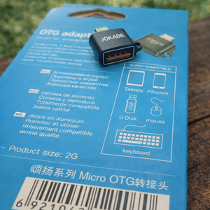 وصلة JOKADE Micro OTG هي الحل العملي لتوصيل أجهزة USB بهاتفك الذي يدعم خاصية OTG عبر منفذ Micro USB. مصممة بحجم صغير وخفيف لتكون سهلة الحمل والاستخدام في أي وقت.