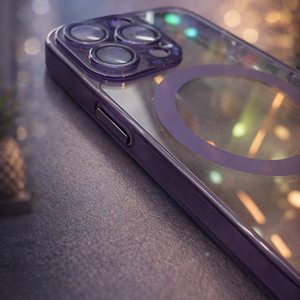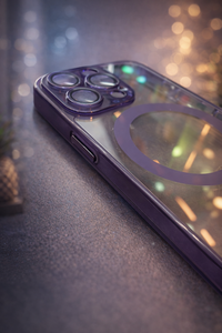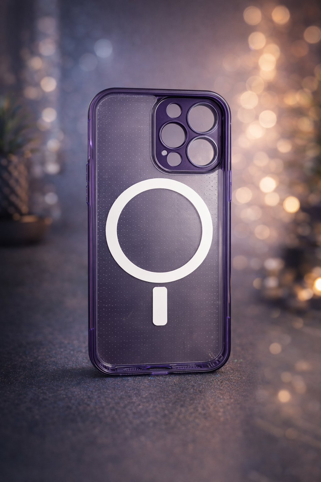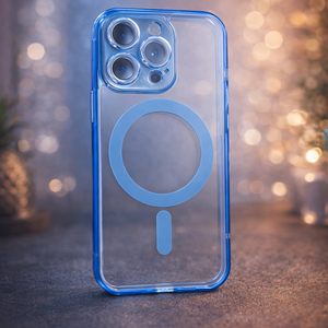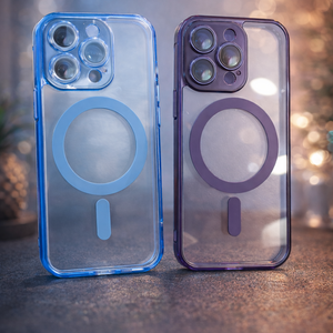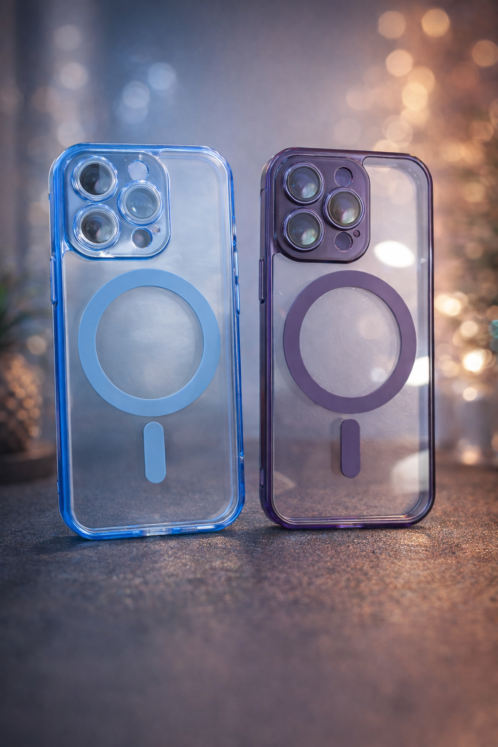كفر شفاف بإطار ملون يدعم تقنية MagSafe لثبات أقوى وشحن أسرع بدون إزالة الكفر.