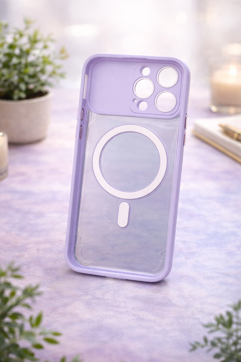 كفر Crystal Clear MagSafe مصمم خصيصًا لهاتف iPhone 15 Pro Max ليجمع بين الأناقة والحماية. يتميز بتصميم شفاف مع إطار ملون أنيق، مع حلقة مغناطيسية مدمجة تدعم الشحن اللاسلكي MagSafe بسهولة. يوفر حماية ممتازة للكاميرا وحواف الهاتف مع إبراز الشكل الأصلي للجهاز.