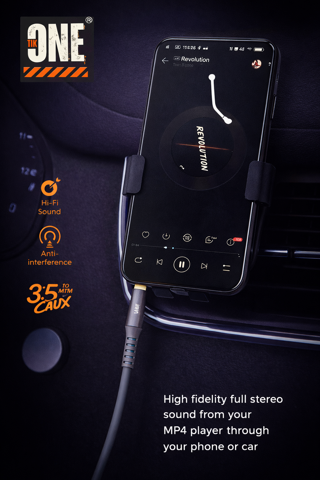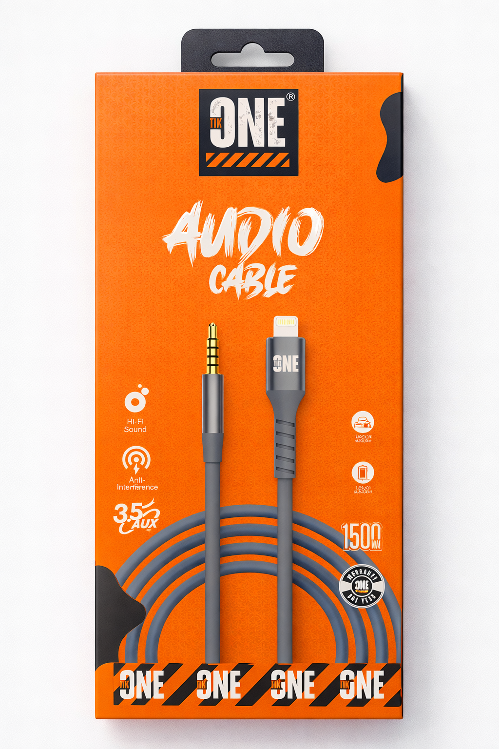 كابل الصوت ONE TIK هو سلك توصيل يُستخدم لنقل الإشارات الصوتية بين الأجهزة المختلفة. تحتوي على كابل توصيل بين منفذ صوت بحجم 3.5 ملم (AUX) من جهة، ومنفذ lightning على الجهة الأخرى.