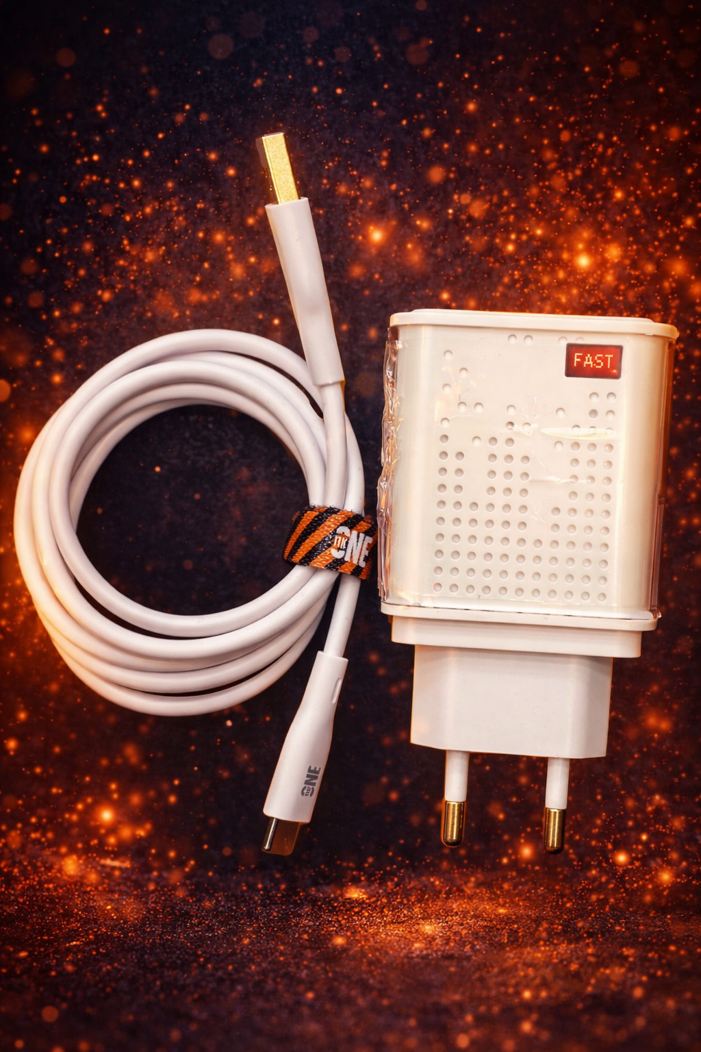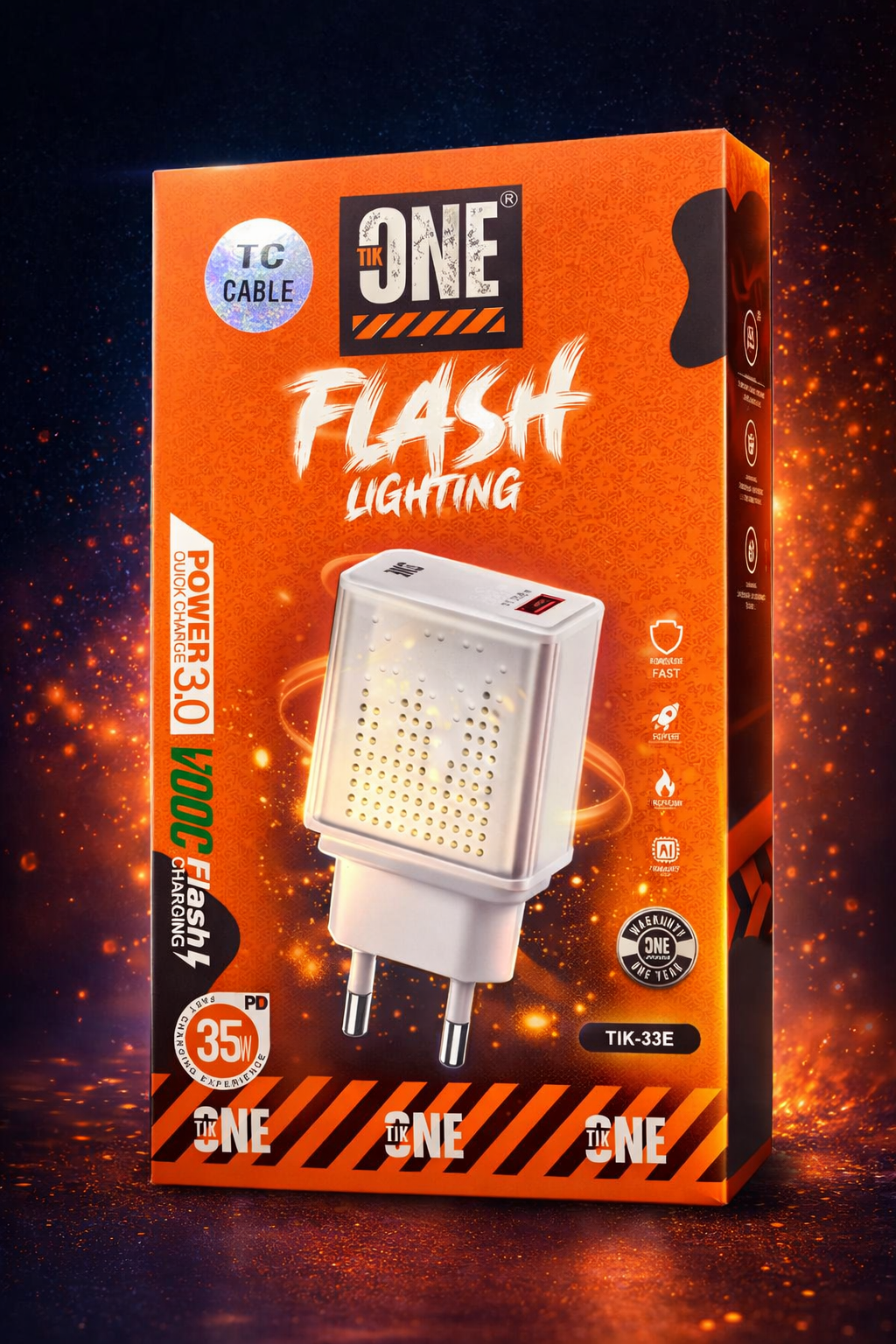شاحن سريع بقدرة 35 واط يدعم تقنيتي الشحن السريع Power 3.0 و PD (توصيل الطاقة). يتميز بوجود كابل TC (Type-C) مضمن.