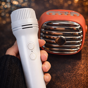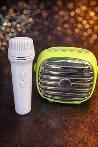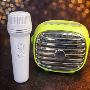 سماعة كاراوكي محمولة مع مايك لاسلكي بتصميم عصري وصوت واضح وقوي