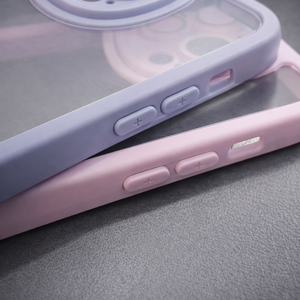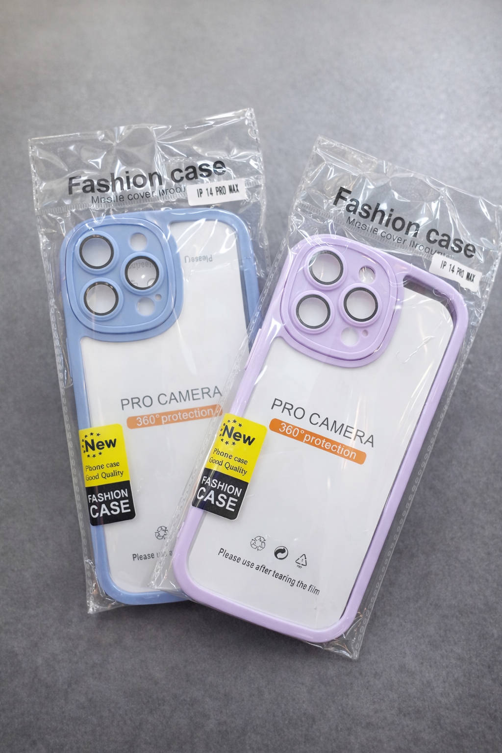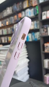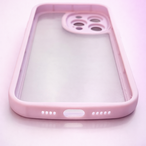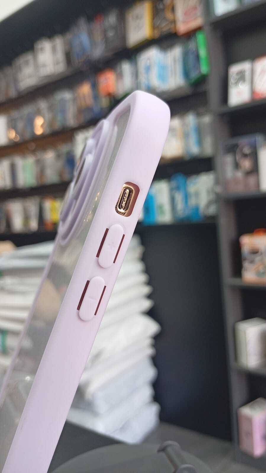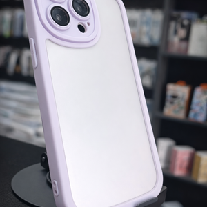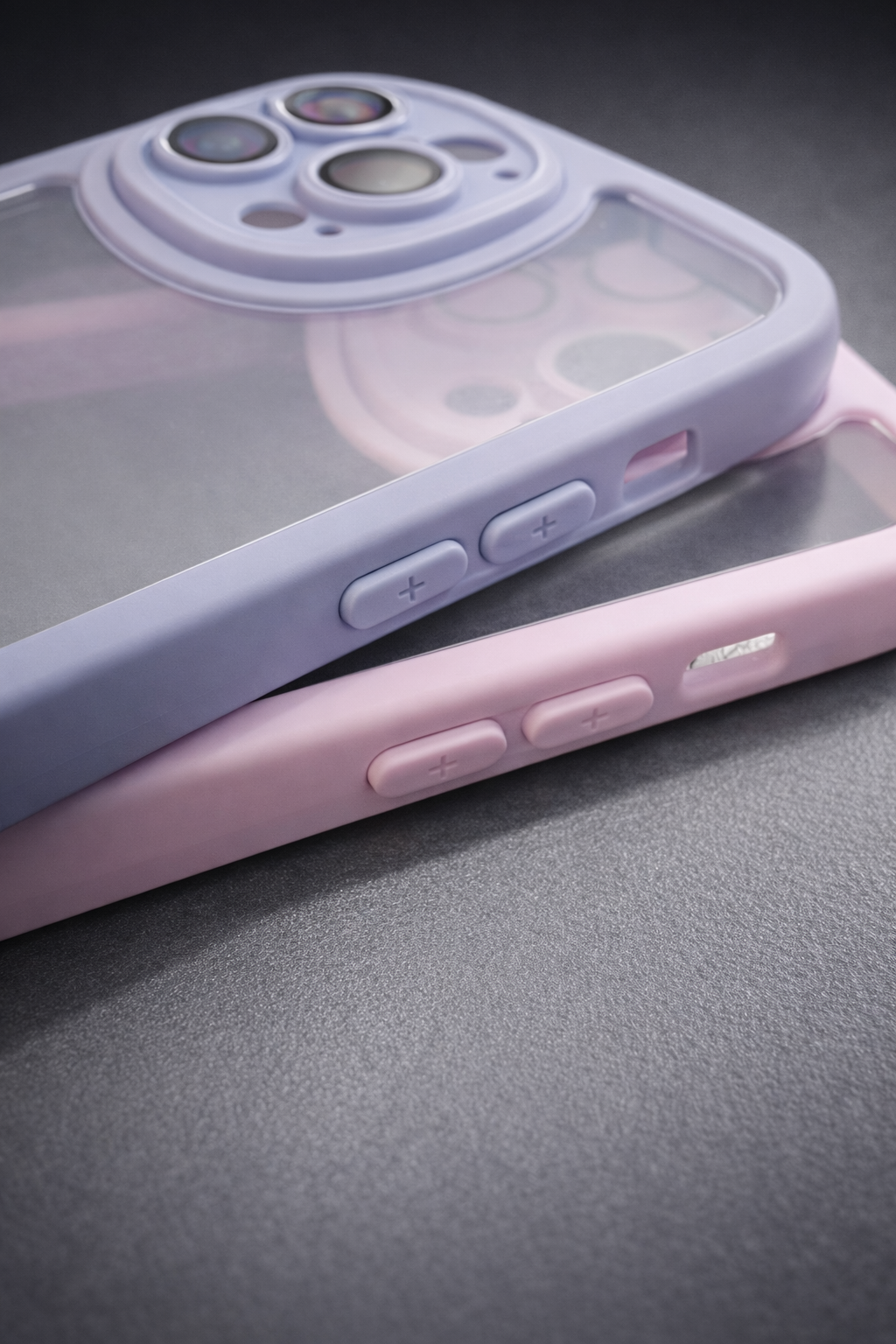 كفر حماية شفاف بإطار سيليكون بلون لافندر ناعم، مصمم ليبرز جمال الهاتف مع توفير حماية متكاملة للكاميرا والحواف. يتميز بحواف مرتفعة حول العدسات لحماية إضافية، وتصميم نحيف يحافظ على شكل الجهاز بدون زيادة حجم.