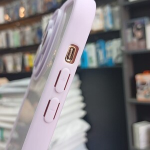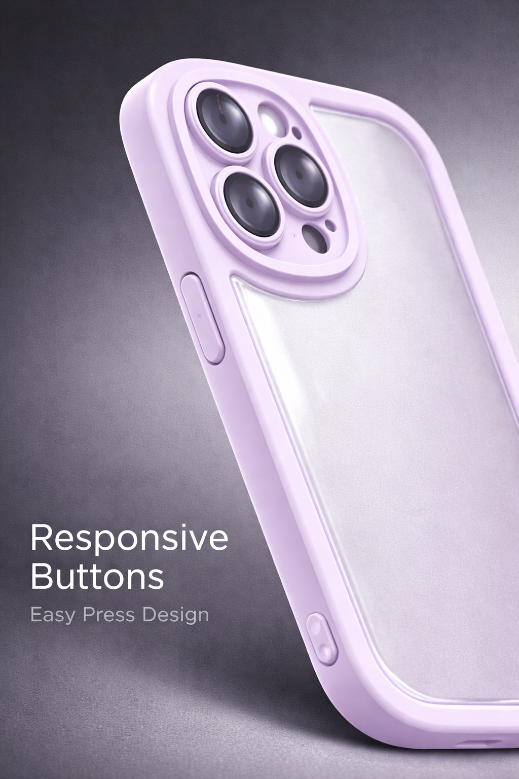 كفر Pro Camera الشفاف باللون اللافندر بيعطي مظهر عصري وبحمي جهازك من الصدمات والخدوش مع إطار كاميرا بارز لحماية كاملة