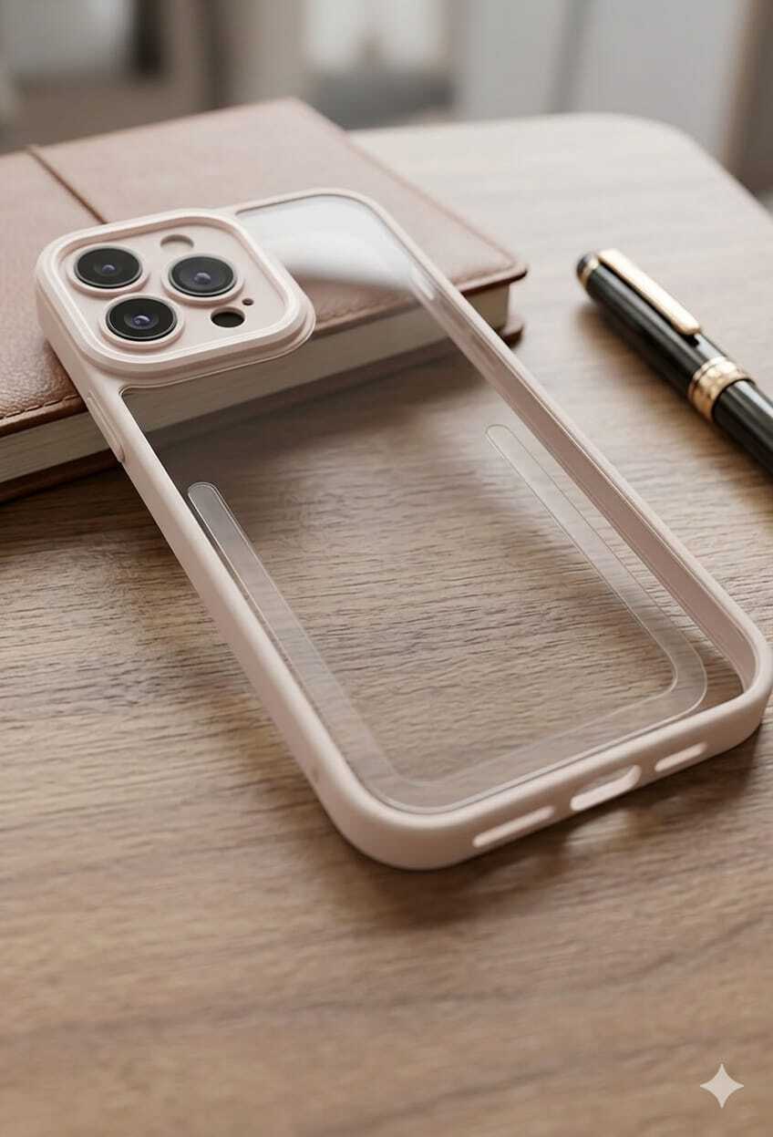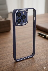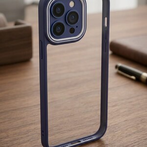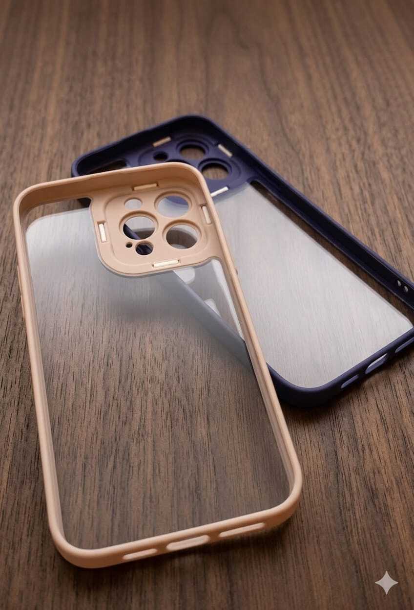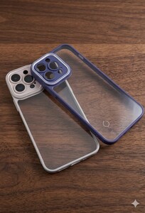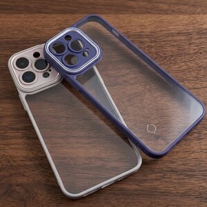 تصميم هجين: ظهر شفاف كريستالي يبرز لون هاتفك الأصلي مع إطار مرن ملون (متوفر باللونين الكحلي والرمادي).
