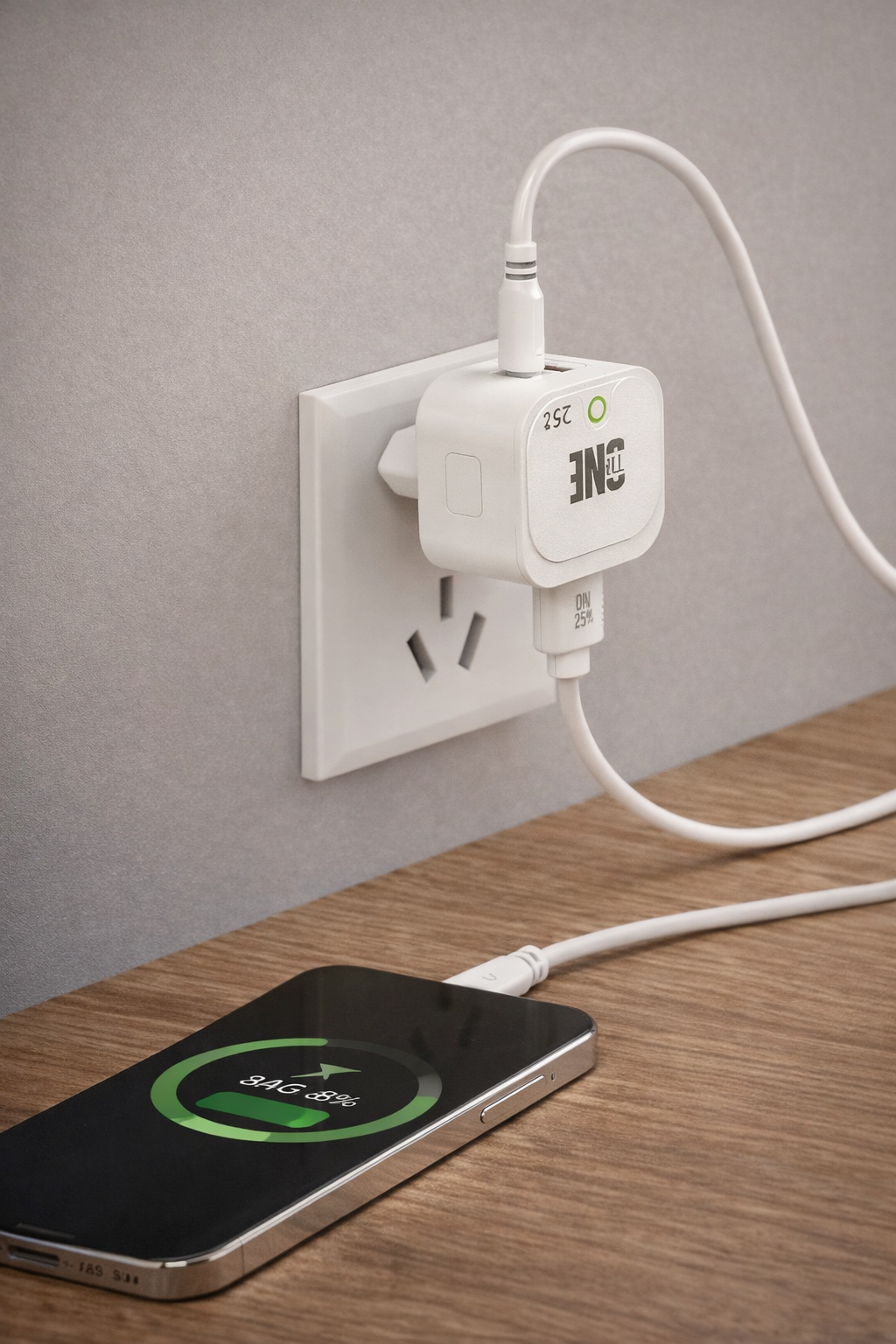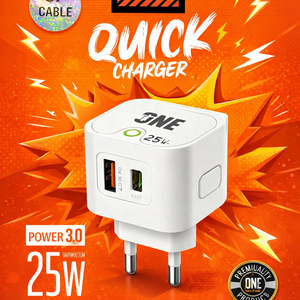 شاحن جداري اقتصادي بقدرة 25 وات، صُمم ليوفر سرعة شحن جيدة تتوافق مع الأجهزة الحديثة التي تدعم تقنيات الشحن السريع.
