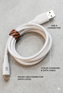 كابل متين: يأتي مع كابل Micro-USB (V8) عالي الجودة، يدعم نقل البيانات والشحن السريع، ومزود برابط منظم للكابل.