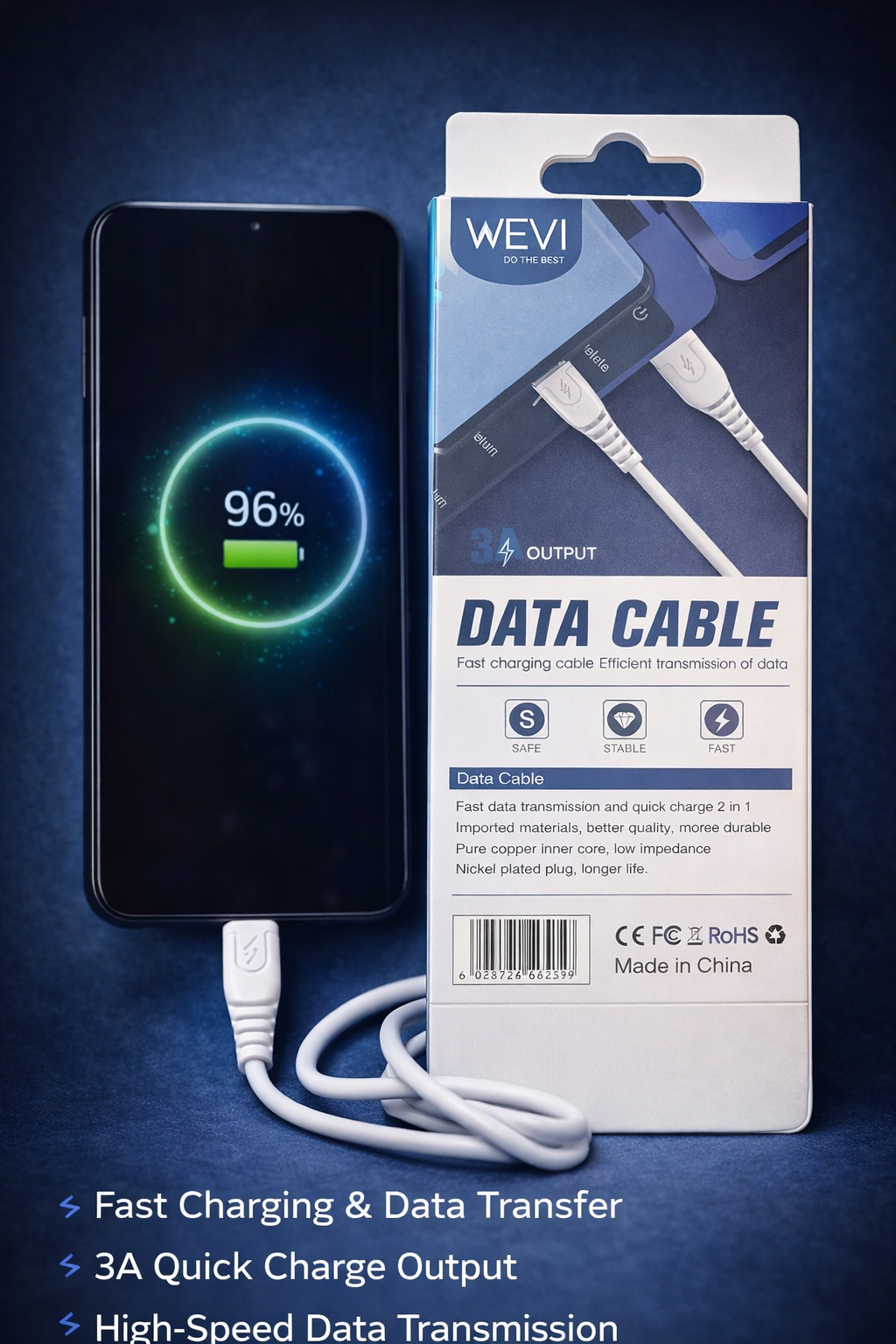 كيبل WEVI W-03 يمنحك شحن سريع 3A وأداء قوي يدوم مع استخدام يومي بدون مشاكل.